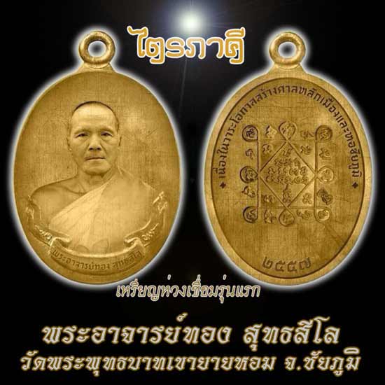 เหรียญห่วงเชื่อมรุ่นแรก "ไตรภาคี" สร้างศาลหลักเมืองและหอชัยภูมิ หลวงพ่อทอง สุทธสีโล