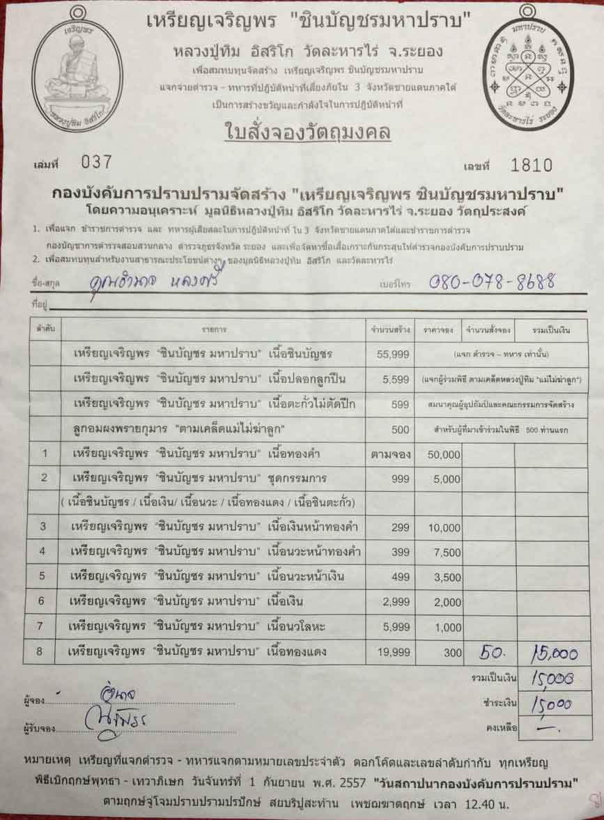 ทองแดง เจริญพร มหาปราบ ใกล้จะรับพระแล้วครับ ยกใบ 50 เหรียญ