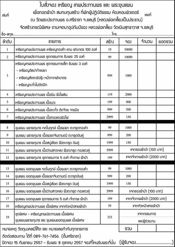 2.ชุดกรรมการรับพระ 25 องค์ ราคา 10,000 บาท สอบถาม