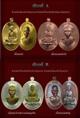 2. เหรียญแจกทานเนื้อทองแดงกะหลั่ยทองพิมพ์ A และ B รวม 2 องค์ 300 บาท มี 10 ชุด