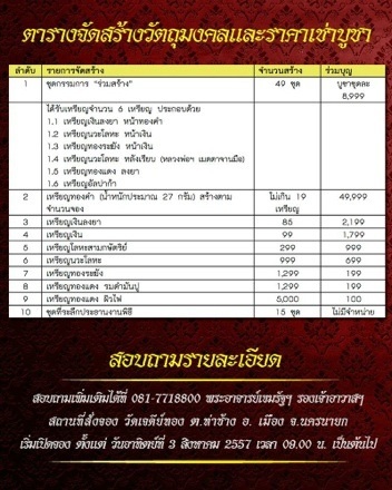 หากท่านใดสนใจร่วมทำบุญสั่งจองสามารถ ติดต่อได้ที่วัดเจดีย์ทองโดยตรง โทร 081-771 8800 พระปลัดเขมรัฐฯ ผู้ช่วยเจ้าอาวาสฯ ขอบคุณครับ |