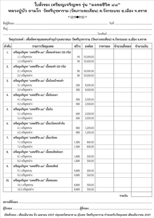 ** เหรียญหล่อโบราณมงคลชีวิต ๘๘ จัดส่งไปรษณีย์ให้ก่อนภายในเดือนกันยายน พ.ศ. 2557**