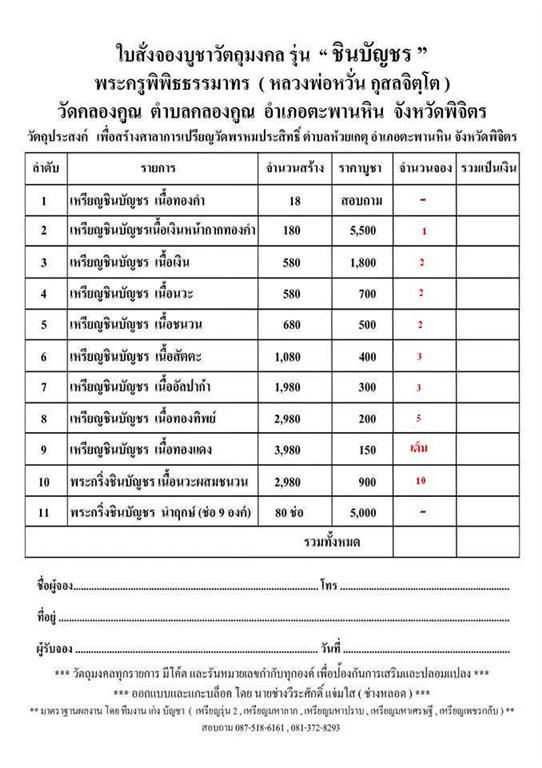 << เปิดจอง หลวงพ่อหวั่น วัดคลองคูณ จ.พิจิตร รุ่น ชินบัญชร วัดคลองคูณ ราคาวัด>>