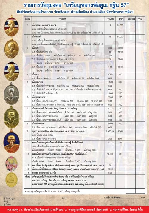 1.ชุดกองบุญมียอด 5 กองบุญๆละ 12000 บาท (รับพระ 106 เหรียญ)มูลค่า 21800