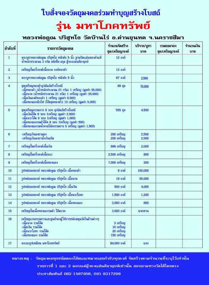 ชุดกรรมการ ๙ ร้อบ อุปภัมถ์สร้างโบสถ์สร้าง ๙๙๙ ชุด ๆ ละ ๔,๕๐๐ บาท มีให้จอง ๓ ชุด