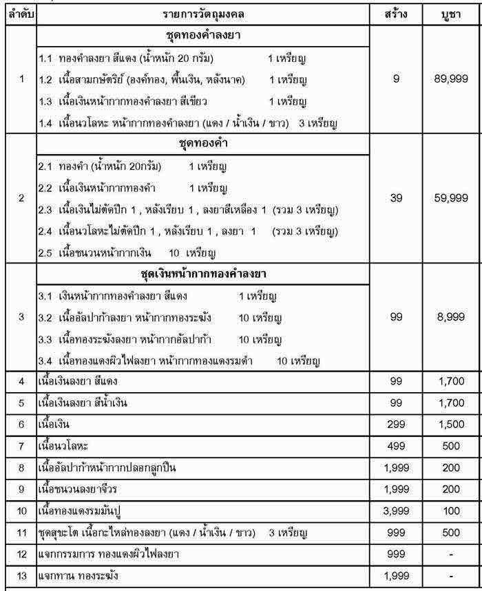 2.ชุดทองคำ มีจำนวน 1 ชุด ชุดละ 60,000 บาท