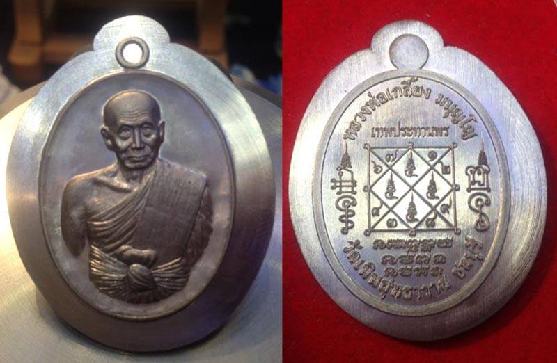 6.เนื้อตะกั่ว ติดจีวร จารมือ ราคา 500 บาท มียอด 5 องค์