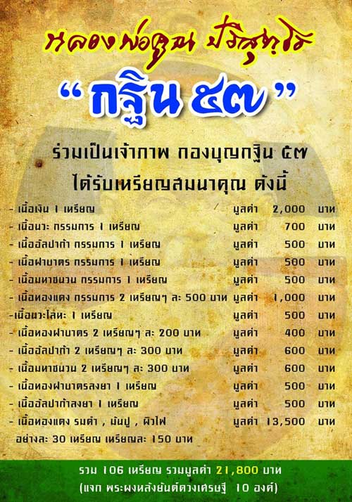 ชุดกองบุญ มี 2 กองบุญ ......กองละ 13,000 บาท