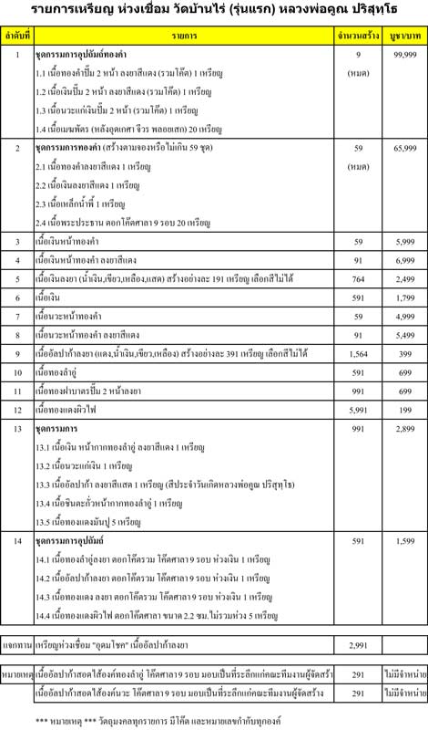 รายการที่มีให้จอง (กำหนดการรับพระประมาณวันที่ 15 กันยายน 2557 แจกจ่ายไปทุกศูนย์จองครับ)