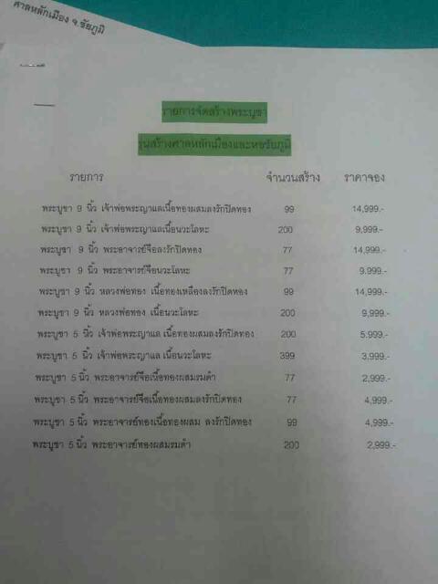พระบูชา หลวงพ่อทอง ไตรภาคี รุ่นสร้างศาลหลักเมือง