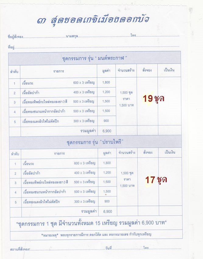 ชุดกรรมการ รุ่น ปราบไพรี สร้าง 1500 ชุด