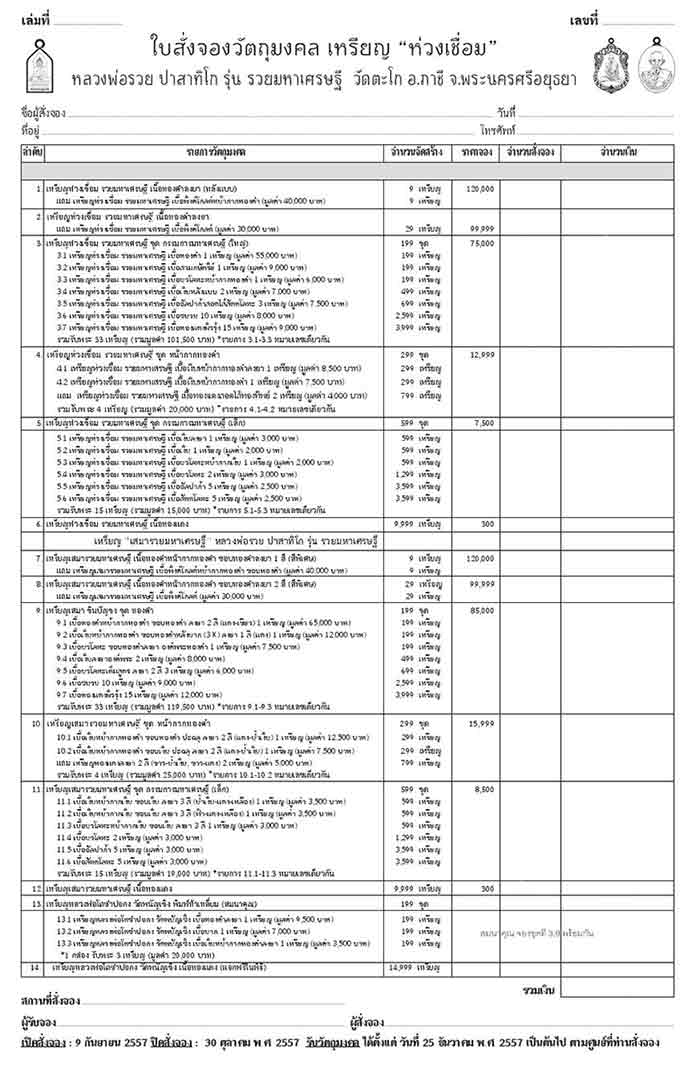 แบ่งยอดจองหลวงพ่อรวย วัดตะโก รุ่น รวยมหาเศรษฐี
