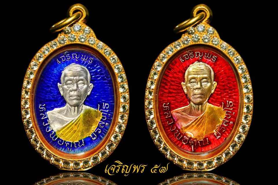 เงินหลังยันต์ ลงยา 3 สี เลือกสีไม่ได้ มียอด 2 เหรียญ ๆ ละ 3,500