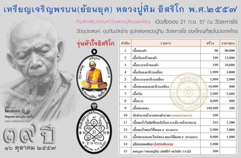 ***เจริญพรบน ย้อนยุค หลวงปู่ทิม วัดละหารไร่ พระบูชาหน้าตัก 5.9" สร้าง 599องค์ ด่วนๆเลยครับ***แรงทะลุวัด