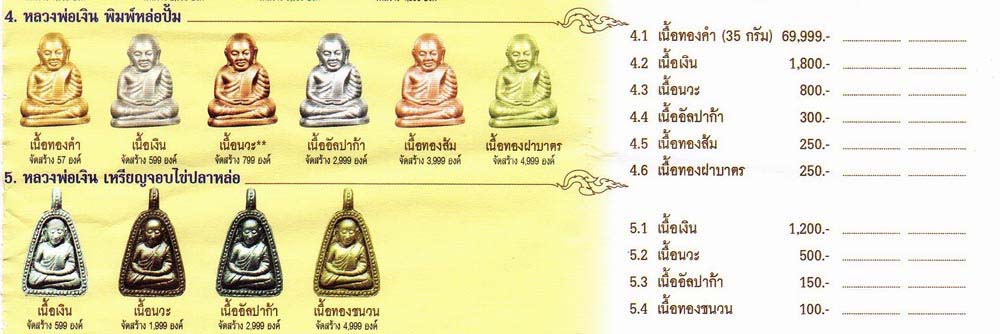 5.1 เนื้อเงิน สร้าง 599 องค์ มียอด 6 องค์ ๆ ละ 1,200 บาท
