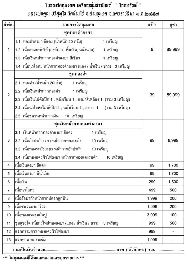 เปิดจองหลวงพ่อคูณ เหรียญพุ่มข้าวบิณฑ์ โภคทรัพย์ สร้างเป็นครั้งแรก