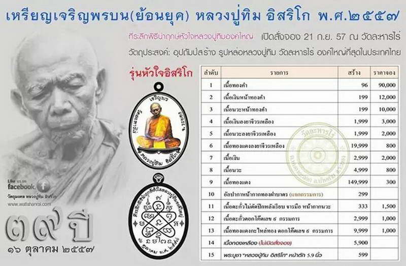 แบ่งยอดจอง เหรียญเจริญพรบน(ย้อนยุค) หลวงปู่ทิม อิสริโก พ.ศ.๒๕๕๗