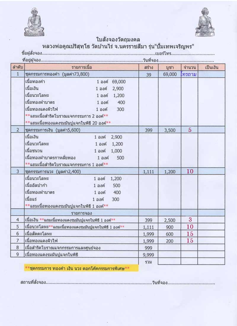 โทรถามก่อนสั่งจองนะครับ