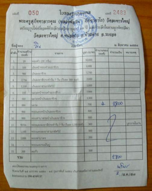 1.นะวะ 4องค์ มียอด 1ใบ 4800 บาท .(ใบจองเล่มที่050เลขที่ 2483 )