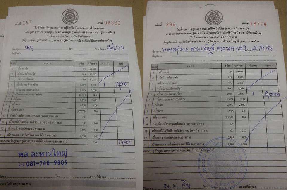 เปิดใบจองจากวัด เจริญพรบน ย้อนยุค หลวงปู่ทิม วัดละหารไร่ หลายเนื้อครับ