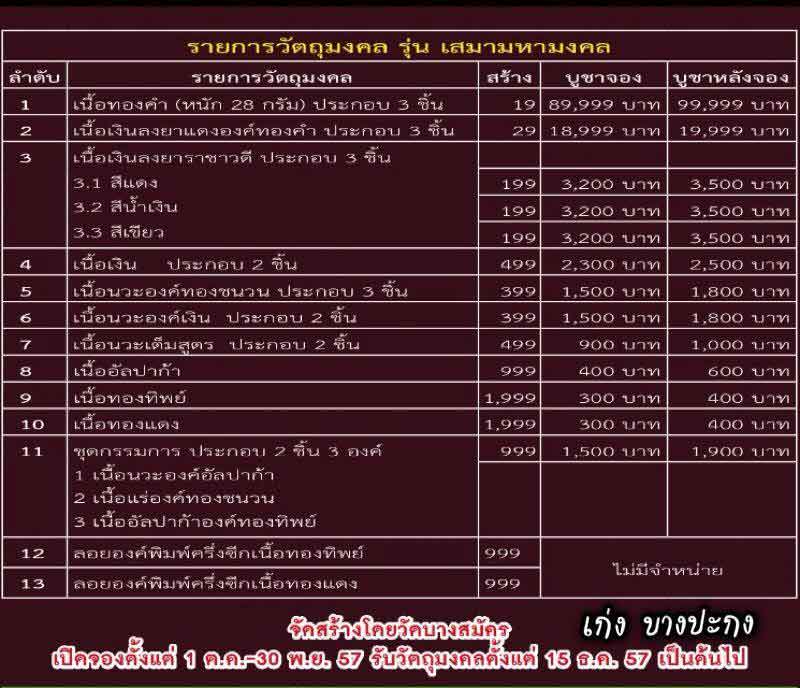 ราคาวัดบวกค่าจัดส่ง 100 บาท