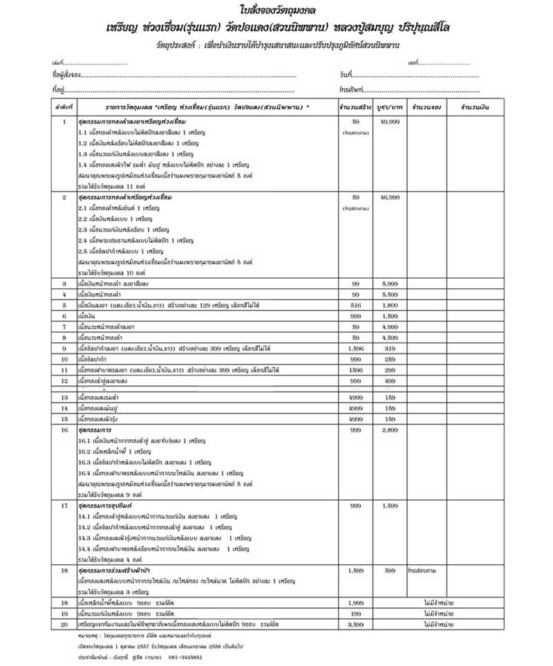 (รวมได้รับวัตถุมงคล 9 องค์)