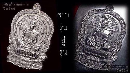 เหรียญเนื้อเงิน นั่งพาน ชนะมาร ๒ + เสมา วัดปรก ๒
