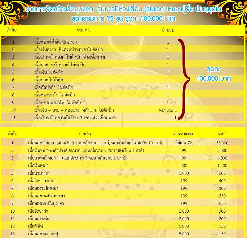 2.เนื้อเงินหน้าทองคำลงยาห่วงเชื่อมนาค (แถมเนื้อนวะลงยา 9 รอบ หลังเรียบ 1 องค์) มียอด 1 เหรียญๆละ 5,000 บาท
