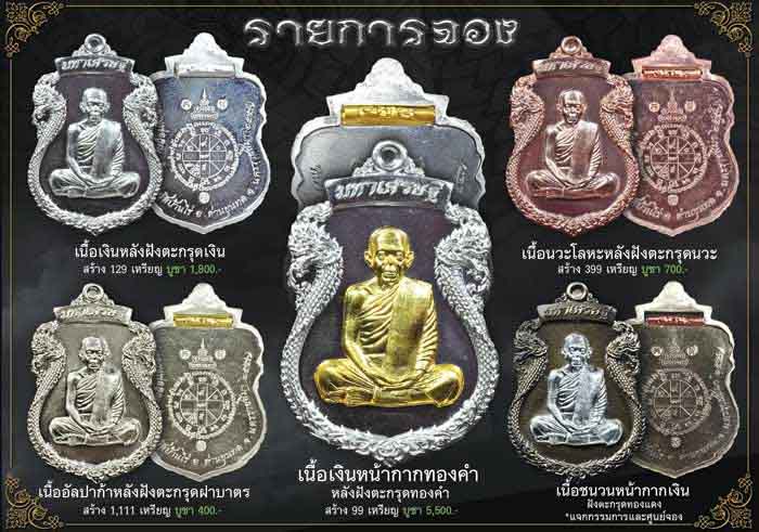 6. เนื้อเงินลงยา 3 สีแดง-น้ำเงิน-เขียว ฝังตะกรุดเงิน เหรียญละ 2000 บาท มียอดสีละ 1 เหรียญ