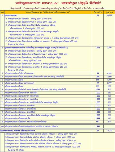 รายการที่ 2. ชุดกรรมการอุปถัมภ์ร่วมสร้าง สร้าง 1,991 ชุด มี 4 ชุดๆละ 2,499 บาท