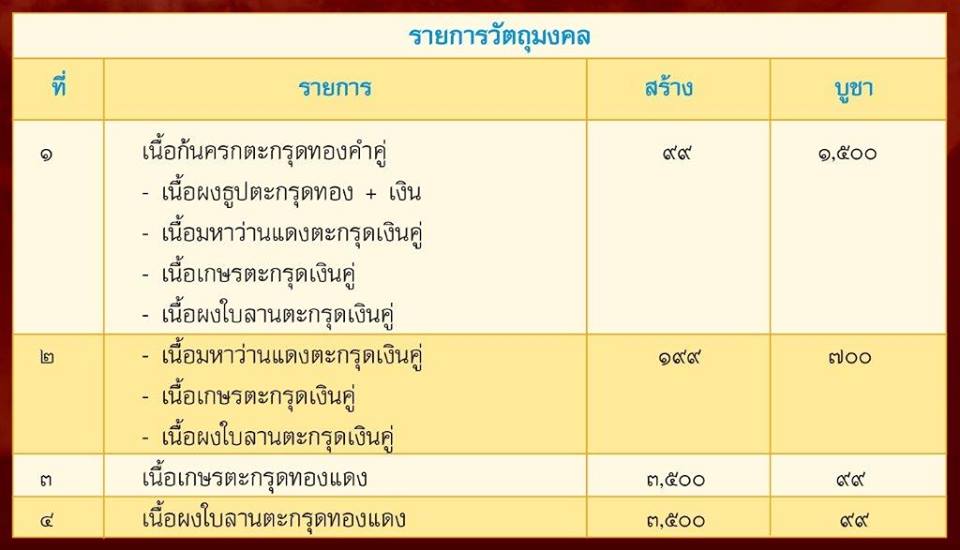 งานบุญกฐินฯ ปี 2557 รายการที่เปิดจองมีดังนี้