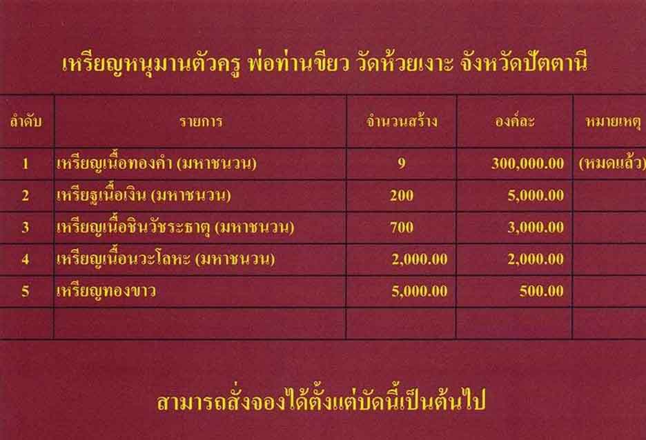เนื้อทองขาว สร้าง 5000 บูชา 500 มียอด 20 เหรียญ