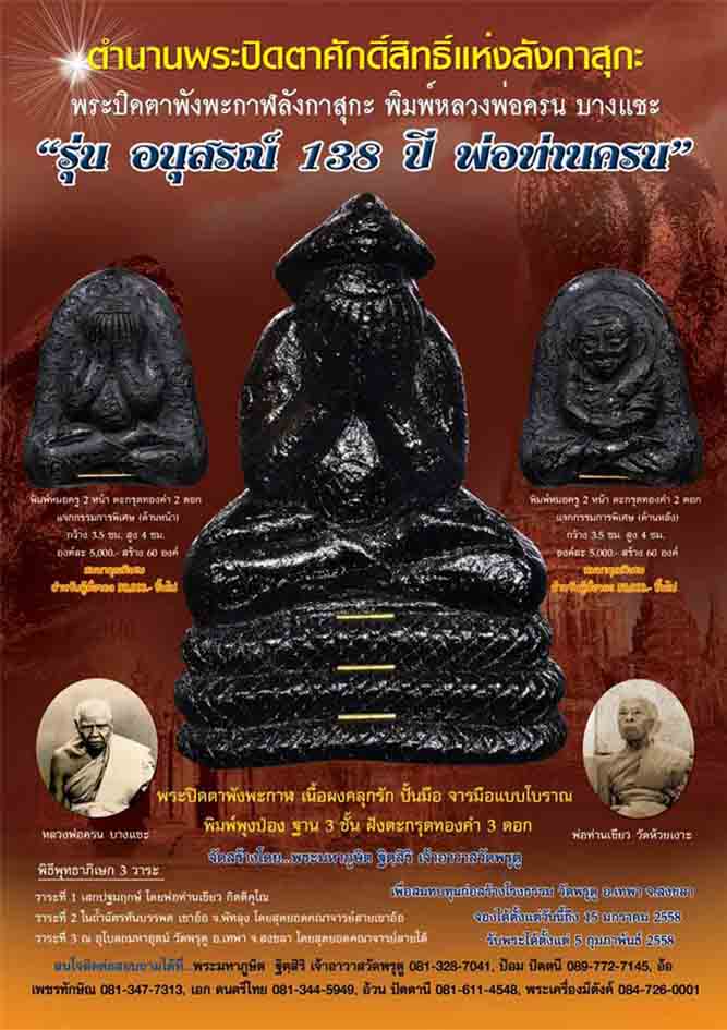 [[[เปิดจอง]]]ตำนานพระปิดตาศักดิ์สิทธิ์แห่งลังกาสุกะ พระปิดตาพังพะกาฬลังกาสุกะ พิมพ์หลวงพ่อครน บางแซะ รุ่น " อนุสรณ์ 138 ปี พ่อท่านครน"