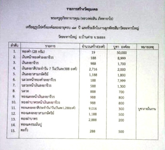 ราคาเหมา 8,100 บ. หรือแบ่ง 2,800 บ./องค์