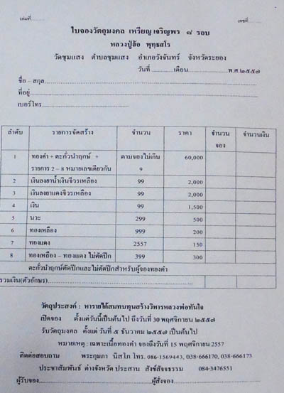 สอบ ถาม 0843476551 หรือสะดวกจองที่วัด สอบถาม 086 1569443 |