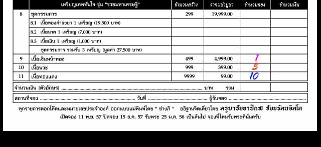 รายการที่ 11 เนื้อทองแดง จำนวน 10 เหรียญ ราคาเหรียญละ 99 บาท