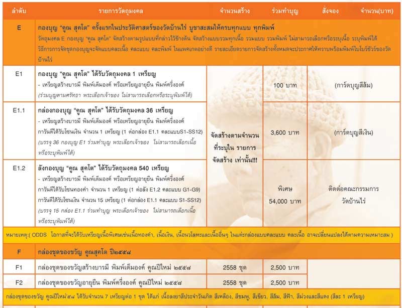 ร่วมบุญ 3,600 บาท มี 4 ชุดสุดท้าย