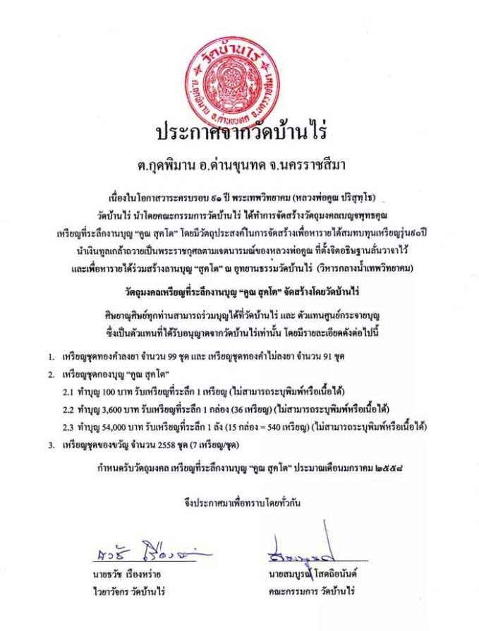 E1.1 กล่องกองบุญ คูณ สุคโต รับพระ 36 เหรียญ