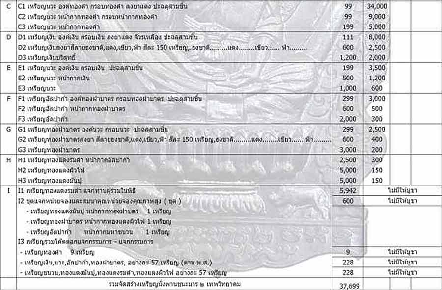 F1 เนื้ออัลปาก้า องค์ทองฝาบาตร กรอบทองฝาบาตร ปะฉะลุสามชิ้น มียอด 1 เหรียญ ๆละ 3,000 บาท