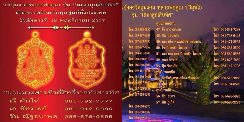เปิดจอง เหรียญ "เสมาคูณสิบทิศ" หลวงพ่อคูณ ปริสุทโธ วัดบ้านไร่ มีรายการดังต่อไปนี้