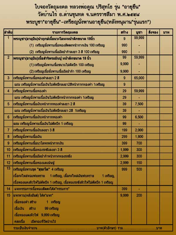 10 เหรียญนั่งพานเนื้อทองระฆังลงยา 3 สี มียอด 16 เหรียญละ 300 บาท