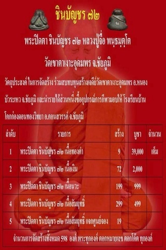 1.ปิตตาชินบัญชร 72 เนื้อนวะ มียอด 10 องค์ละ 999 บาท