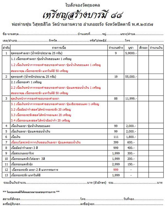 | หัวข้อกระทู้ : เปิดจองเหรียญเสมาสร้างบารมี 88 พ่อท่านซุ่น วัดบ้านลานควาย ราคาวัด .. |