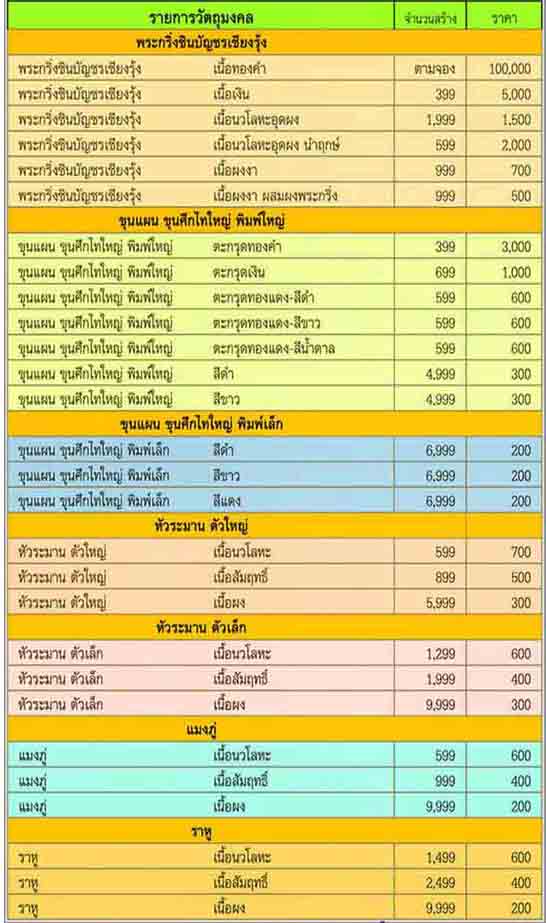 ขุนศึก (ขุนแผน) ไทใหญ่ ด้านหลังลงยันต์เป็นพระยันต์มนต์มหาจินดามณีเหมือนยันต์ของหลวงปู่ ผสมผงเทวตพลี ผงพรายกุมาร ดิน ธูป เทียน น้ำมนต์จากอนุสาวรีย์พระนเรศวร เมืองนะ และดินในถ้ำขุนแผนเมืองกาญ ทั้งพิมพ์เล็กและพิมพ์ใหญ่ ที่ฝังตะกรุดทองคำ เงิน ทองแดงและผงพรายกุมารล้วน ๆ ก็มี