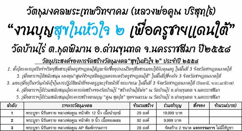 1. พระบูชา นิรันตราย หน้าตัก 9 นิ้ว เนื้อทองผสม สร้าง 92 องค์ = 1 องค์ @ 9,999 บาท (ค่าจัดส่ง 500 บาท)