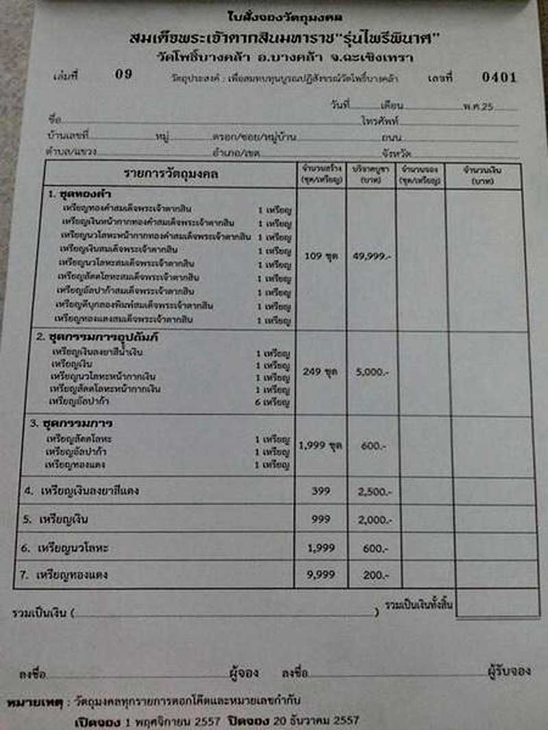 ชุดกรรมการอุปถัมภ์ (เต็มชุด) รับพระ 6 เหรียญ ประกอบด้วย