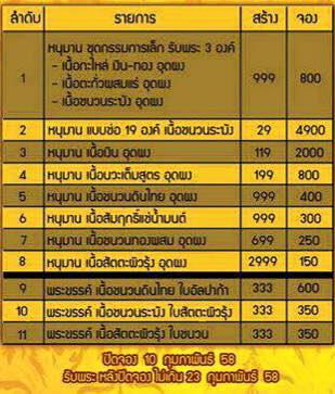 1.หนุมาน กก.เล็ก รับพระ 3 องค์ จอง 800 บาท มียอด 4 ชุด