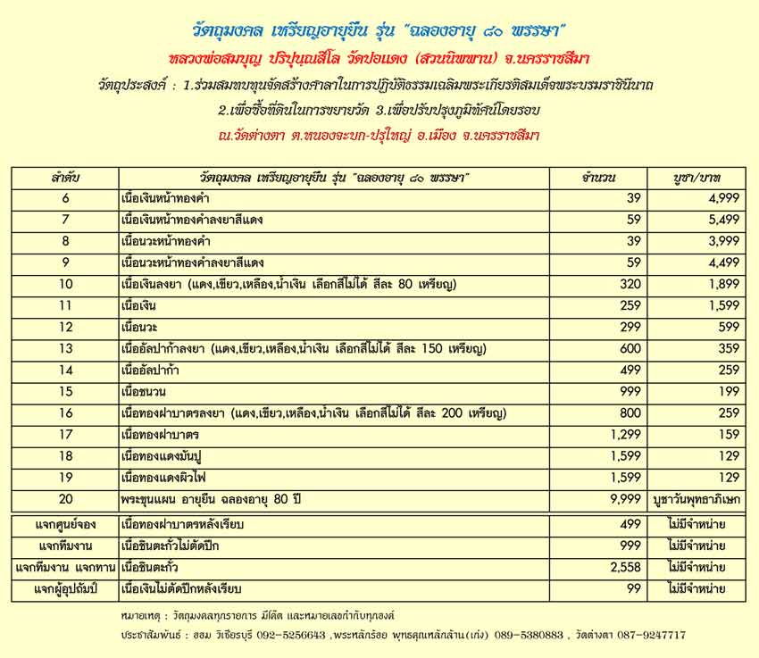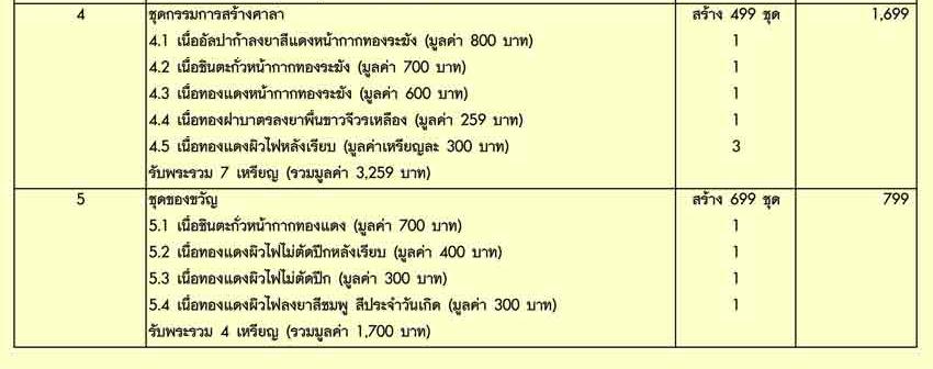 รายการที่ 4. ชุดกรรมการสร้างศาลา บูชาชุดละ 1,699 บาท มียอด 6 ชุด
