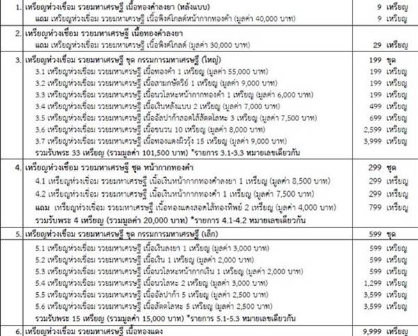 - เนื้อทองแดงสอดไส้ทองทิพย์ มี 2 เหรียญๆละ 2,000 บาท