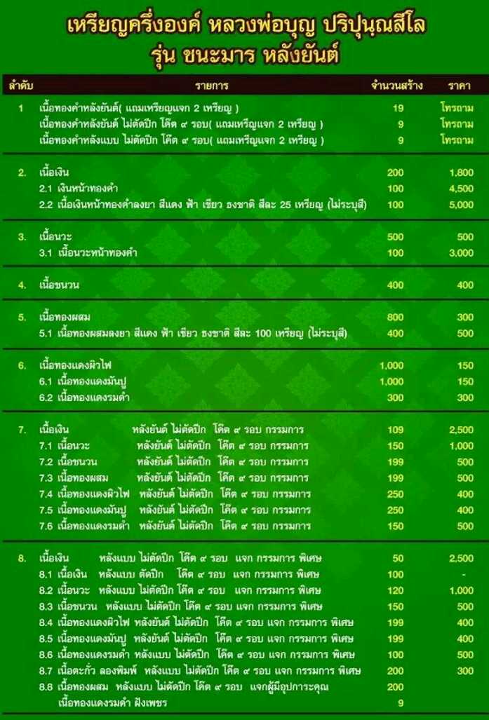 7. เนื้อเงิน หลังยันต์ ไม่ตัดปีก โค๊ต ๙ รอบ กรรมการ มียอด 1 เหรียญๆละ 2,500 บาท